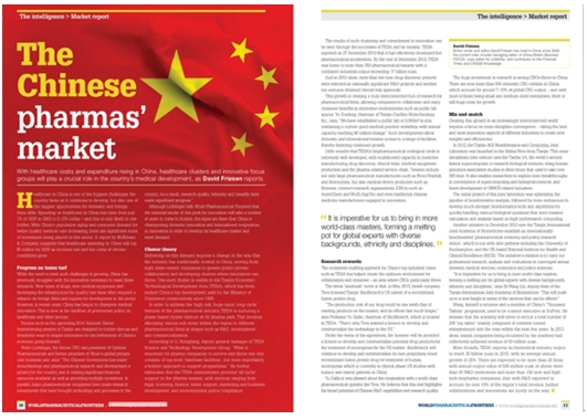 以下是《世界生物醫藥産業前沿》雜志特寫“中國生物醫藥市場”的全文内容: